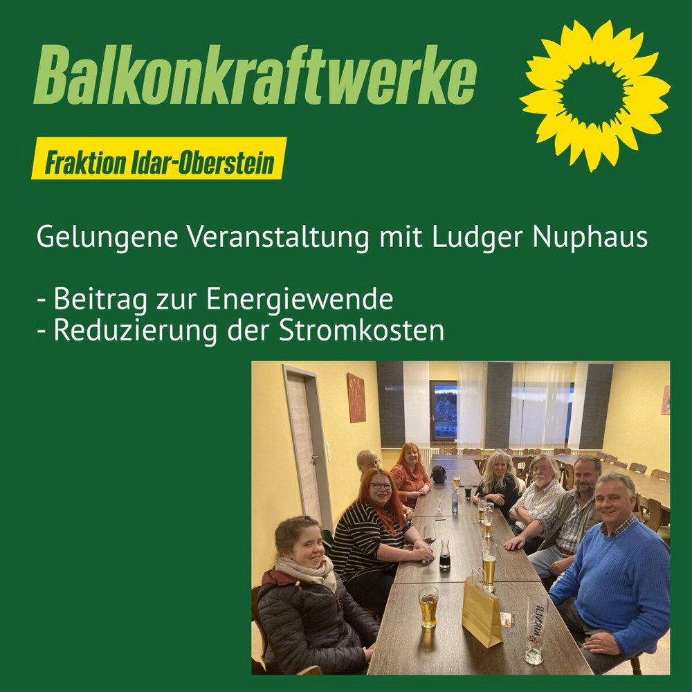 Rund 60 Besucherinnen und Besucher fanden den Weg in den Nebenraum des Restaurant Casa Louy zum Vortrag von Ludger Nuphaus über „Balkonkraftwerke“. Eingeladen war der Referent von der Stadtratsfraktion BÜNDNIS90/ DiE GRÜNEN.