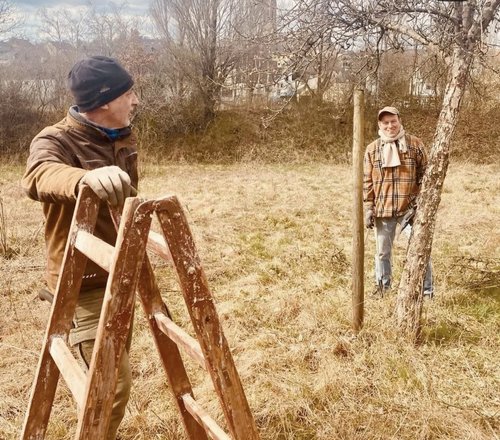 Als wir Grünen in Birkenfeld vor einem Jahr zur Wahl antraten, fanden wir unter anderem den Erhalt und die Pflege unserer Streuobstwiesen wichtig. Daher haben wir uns seitdem zu diesem Thema viele Gedanken gemacht und am 31.März 2025 wurde ein erster Schritt dazu unternommen. Mehrere Grüne, unter ihnen ein Gartenbaumeister und ein Baumwart, machten sich an die Arbeit, die Obstbäume auf dem Gelände des Gymnasiums Birkenfeld - nach Absprache mit dem Direktor der Schule- fachgerecht in Form zu schneiden. Zwei weitere Termine waren notwendig, um einen guten Start für gesunde Früchte im Herbst zu ermöglichen. Und nicht nur, dass es den Beteiligten großen Spaß gemacht hat, sie haben auch einen Beitrag zum Erhalt von Bäumen geleistet, die einst gefördert wurden und nun etwas in Vergessenheit geraten waren. Der neu gegründete Ortsverband Birkenfeld möchte sich nach und nach um Streuobstwiesen in unserer Verbandsgemeinde kümmern und lädt interessierte Bürgerinnen und Bürger herzlich ein, sich diesem Vorhaben anzuschließen, denn Streuobstwiesen bieten Lebensraum für Tiere und Insekten und schützen die Artenvielfalt.