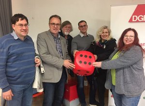 ... das war jedoch nicht das Motto bei der DGB Veranstaltung. Gewürfelt wurde aber trotzdem, statt einer Podiumsdiskussion wurde ein Spiel gespielt, bei dem die Politiker, je nachdem auf welches Feld sie kamen, Fragen zu verschiedenen Themen gestellt bekamen: Umwelt, Teilhabe, Daseinsvorsorge, Verkehr und vieles mehr.